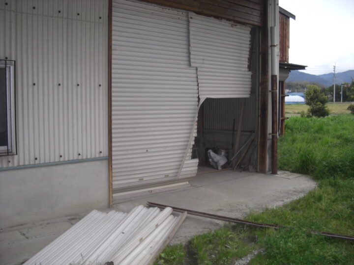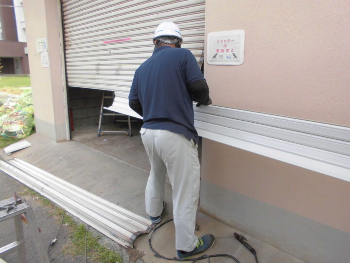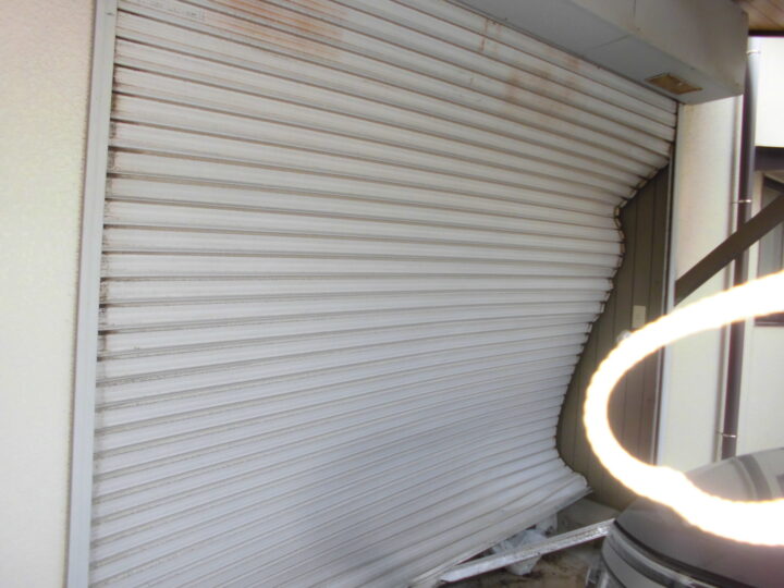 症状:シャッター表面にへこみや波打ちが見られ、開閉がスムーズにいかない。
